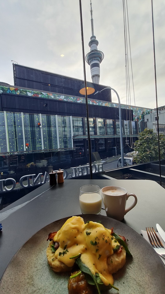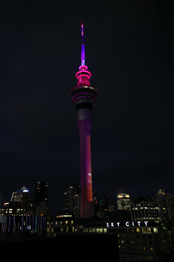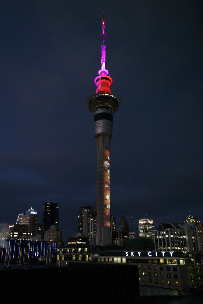 For breakfast I had eggs benedict. I don’t remember how many years I haven’t eaten them. Must have been at least 20… There were not enough guests at the hotel to have a buffet so I could order breakfast a la carte. 🙂 I walked around a bit. Let me mention that I am able to walk for 2 hours – maybe 3 with some rest in between but that’s it. My body is not back into full force so I have to adjust. But to be clear as well: I am grateful that I am able to do this even if I have to restrain myself from doing too much. I usually long to walk more but not possible. One of the reasons why nowadays I prefer a room with a view: when I have to stay at the hotel at least I can admire the view. 🙂 That evening I noticed that there was a special illumination at the Sky Tower. I have a video of it where a drone was filming it. Don’t think that was legal…