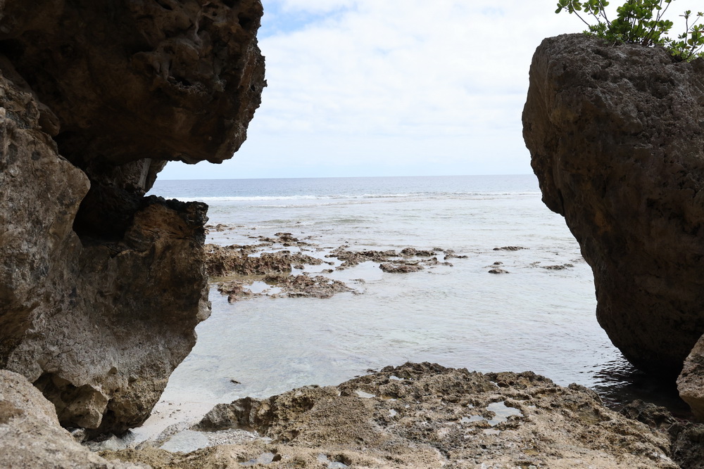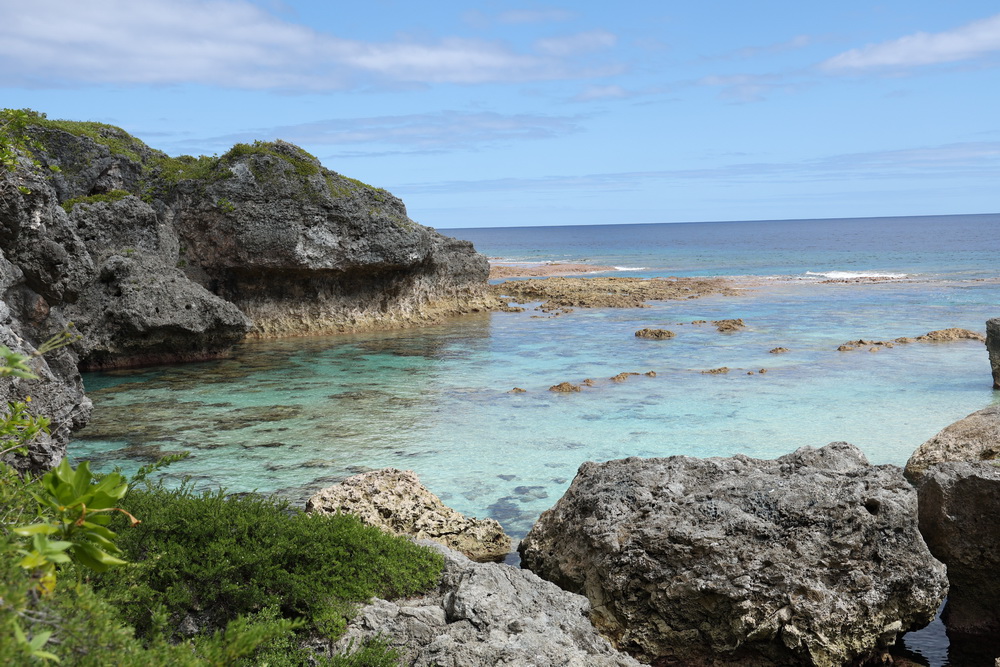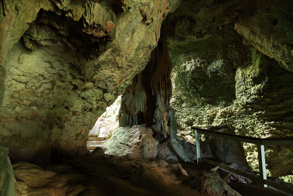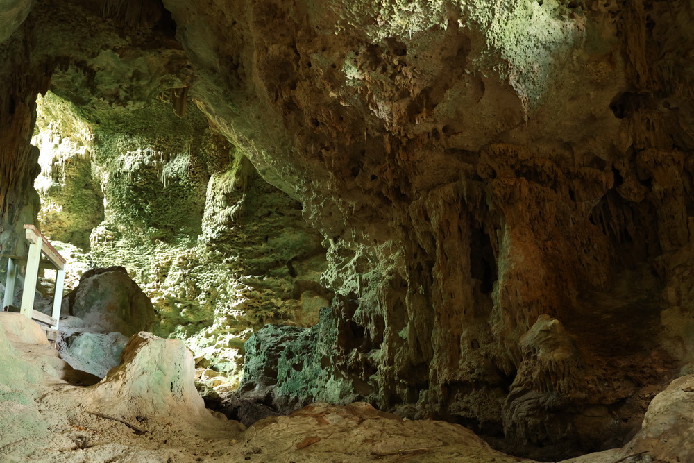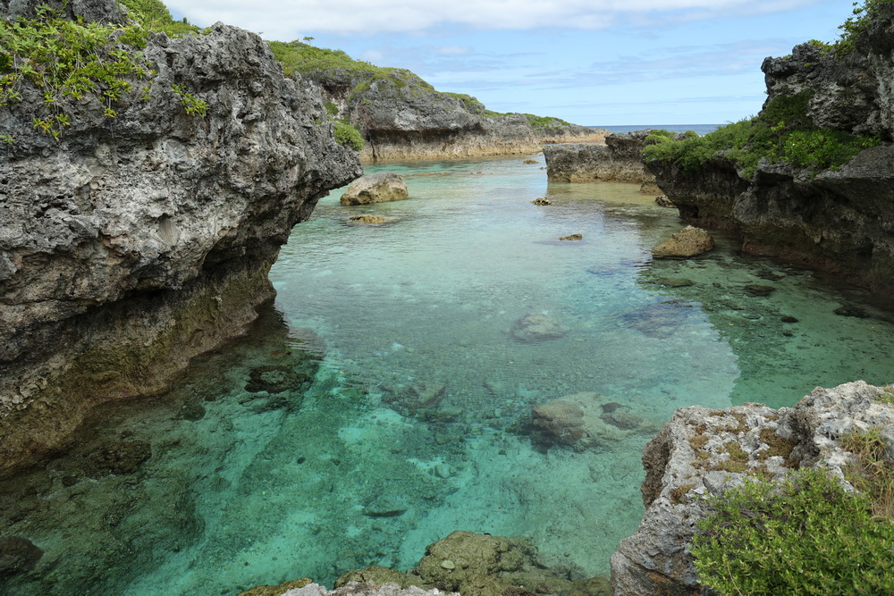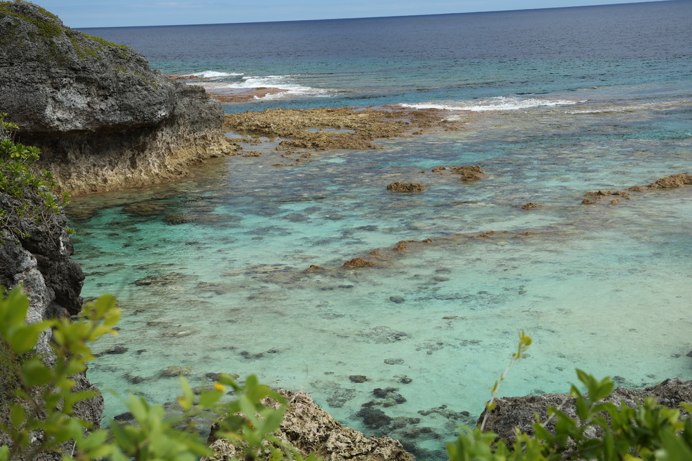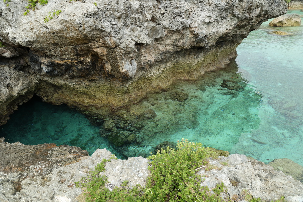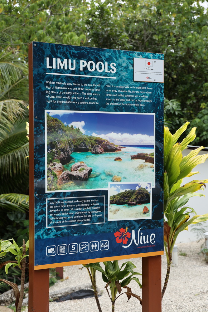 We went on an island tour with our group. What Niue really impressed me with is that even though it is a small, remote island they have signs at spots of tourist interest. And if you want to go down to water level you usually have to climb down the rocks. But they have created paths with steps and handholds. Sometimes through caves with stalaktites. So even for me it usually was possible to walk down to water level. In addition – in a lot of the parking lots for these places there are toilets. They are not fancy but in my oppinion that is not necessary. I personally think that it is very unusual for that small island to have so many public restrooms. Go to very touristy areas and often you don’t find any public restrooms at all. So Niue does have my admiration for that. You can see everywhere that the island is limestone. There are fossils everywhere. No rivers on the island as the water usually goes down through the limestone.