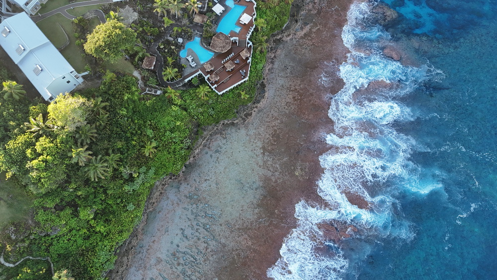 Here you will get some more pics from my drone. We had to unblock our drones to fly them at the hotel because the hotel is too close to the airport. Since there are only two flights per week (well, we heard one plane departing on a saturday evening but that was Medivac not a regular flight) it doesn’t make sense to block drones all the time. So we registered and asked for permission and were unblocked for the days without flights. I flew my drone very early in the morning shortly after sunrise. While being at breakfast whales were coming in and I went to get my drone again. There was a german film team who were working on a documentary about Niue for a german/french TV station and they were flying their drone as well we coordinated in order to avoid a collision of our drones. I finally got my video of the mom with the baby. No special action like breaches or spy hopping but I wanted my pics of whales from the air and I got them. Took some pics of the resort and surrounding coastline as well. When the drone came back I should have just landed it on the terrace of the hotel from where I started it. But I didn’t. I wanted to stay in practice to get hold of the drone with my hand while it is still in the air (if you are flying a drone on a zodiac you need to be able to do that). I never even thought about this being dangerous. When I caught a rotor with one of my fingers I found out that it IS dangerous. The drone fell down face down and the camera was broken. I couldn’t fly it any more. Of course this was unnecessary but I have learned from it. By now I know that it is better to avoid catching it by hand and I have a new drone because I have insurance. 😉