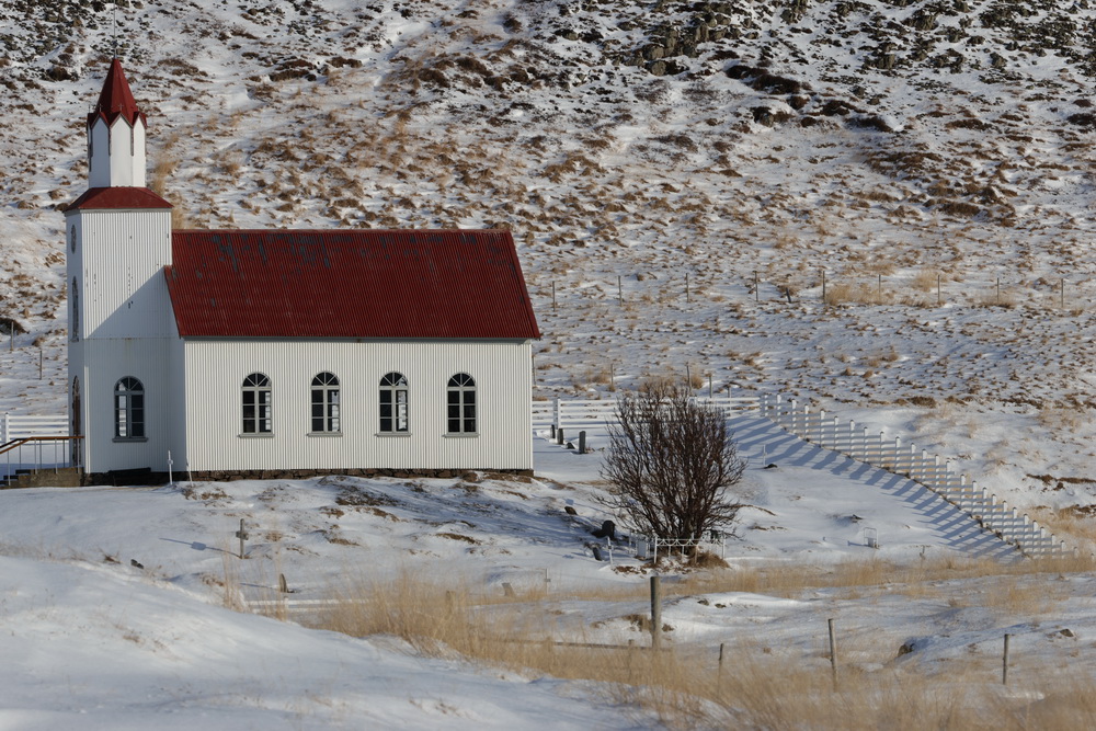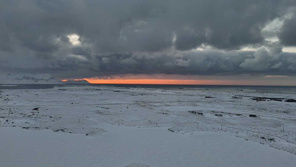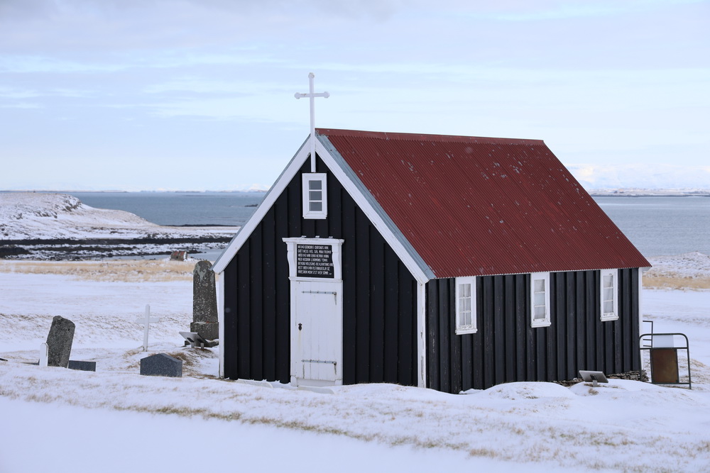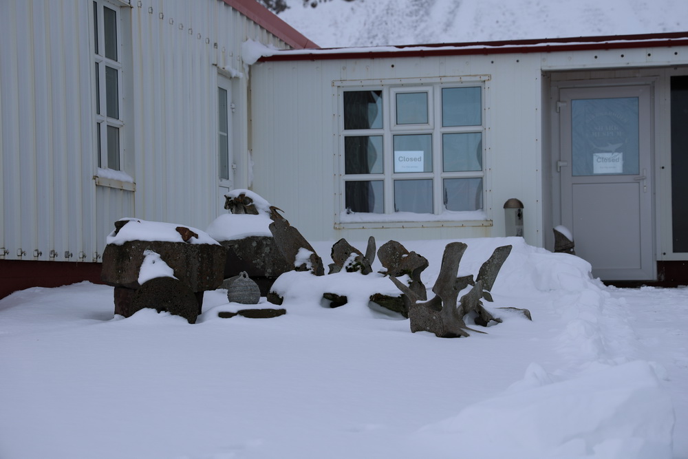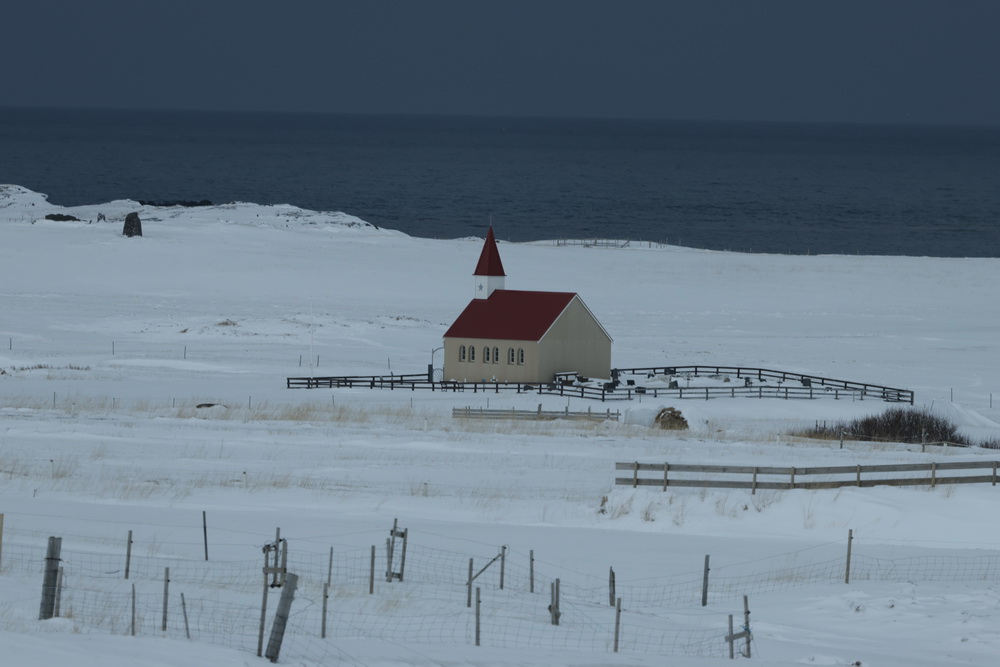 The next morning we had breakfast in our cabins and then headed out. First to the lava fields. It is different when you go to see them in winter. Not a lot to see when everything is covered in snow. 😀 I sent the drone up to get an overview. From there we went to the shark museun. You can eat shark there. It is fermented and supposed to be smelling… we didn’t go there for that (the museum was closed anyway) but because of another black church that belonged to Bjarnahofn. We couldn’t get very close because close to the wall of the churchyard the snow must have been about 1 meter deep.