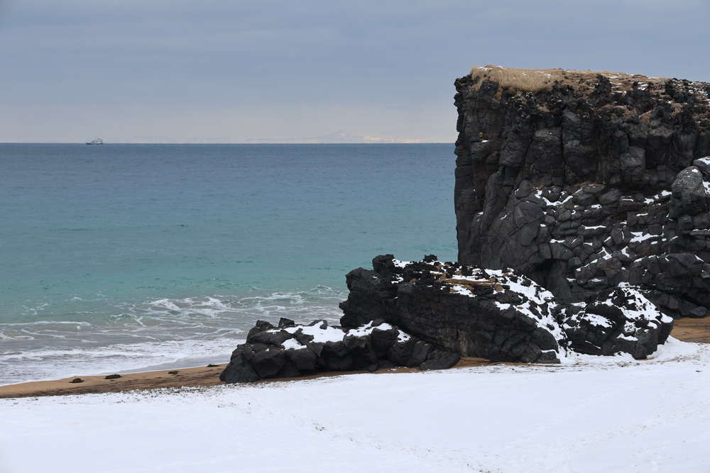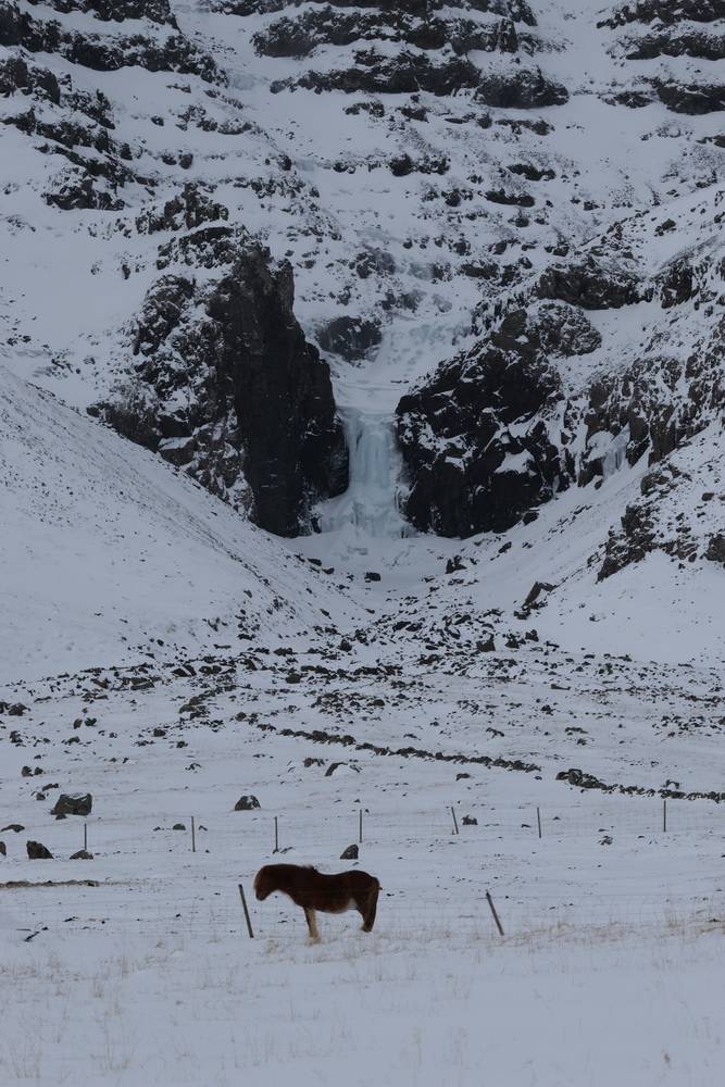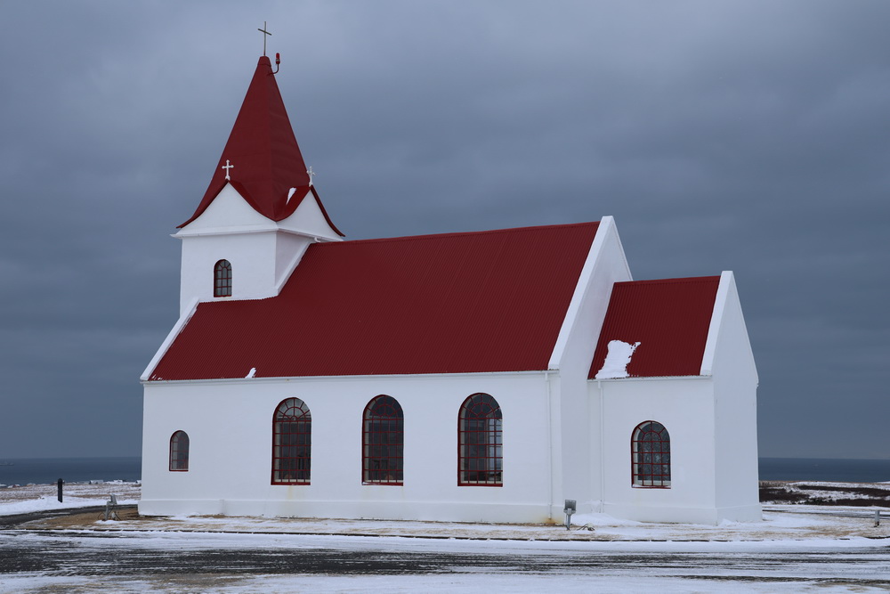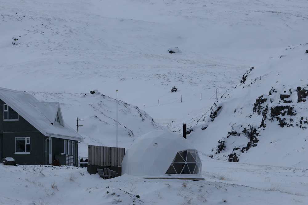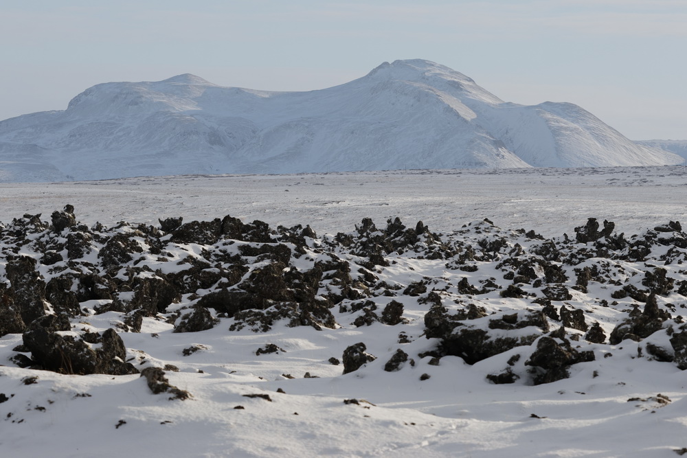 The next morning we had breakfast in our cabins and then headed out. First to the lava fields. It is different when you go to see them in winter. Not a lot to see when everything is covered in snow. 😀 I sent the drone up to get an overview. From there we went to the shark museun. You can eat shark there. It is fermented and supposed to be smelling… we didn’t go there for that (the museum was closed anyway) but because of another black church that belonged to Bjarnahofn. We couldn’t get very close because close to the wall of the churchyard the snow must have been about 1 meter deep.