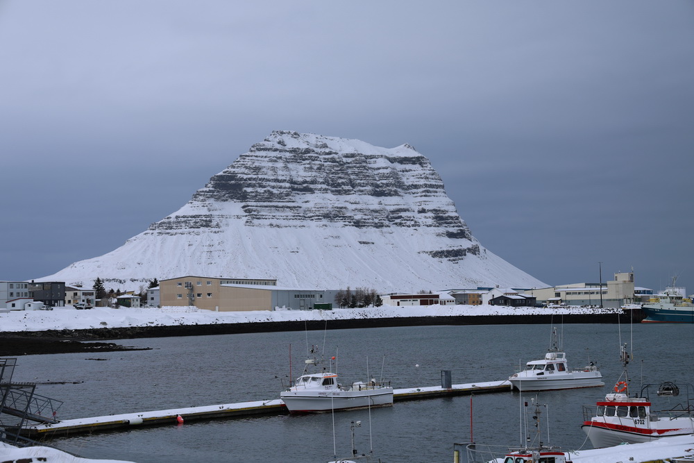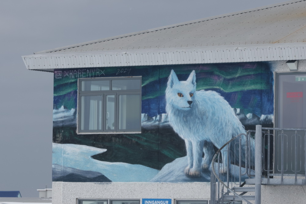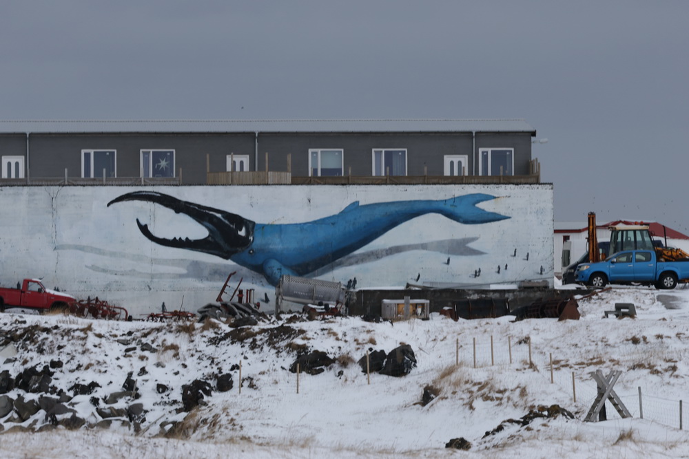 From there we made a short stop to take pics of the famous Kirkjufell mountain which is maybe THE landmark of Iceland. Too many cars there so we headed to explore Olafsvik. Nice church, nice sign next to it. 😀 And then we had lunch in a nice restaurant. From there we continued, saw some murals passing by Hellisandur to go to Ingjaldsholl kirkja. It is one the most famous Instagram points as there is a nice long street heading up to it. We were so annoyed with some asian guys doing their fotosessions on the street (so we couldn’t take pics without them) that we walked next to them and started to take our pics. To let them know that there are other people as well who would like to take pics. 😉 We went behind the church to take pics there and that was nice as we were alone. I sent the drone up again and that was a good idea. When we left another ‚Asia express‘ (that is what we called the busses bringing all those you asian people) had just arrived so we were glad we could leave.