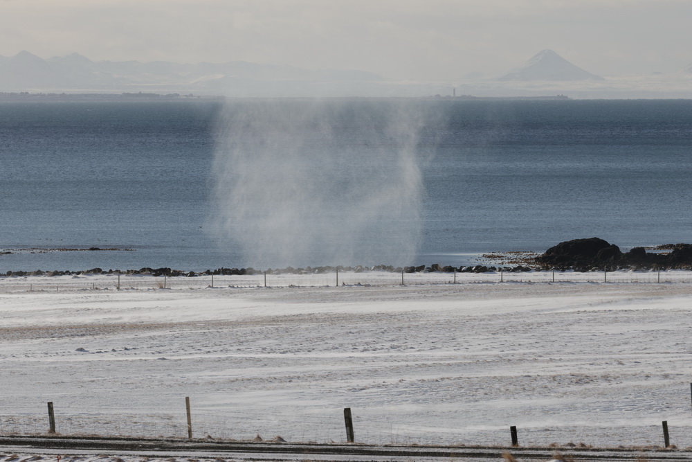 After that we went back to the pass over the mountain and that was where we got our first impression of what was to come over the next days. The sun was out but it was very windy and the snow was blowing over the road. It was impressive… We stopped whenever we found a place that was worth a foto… it wasn’t that often. We stopped at the kaffi in Borgarnes again. The icelandic pastries are really good…. 😉