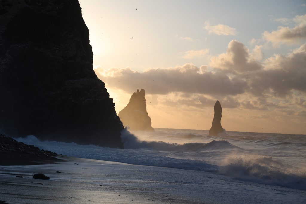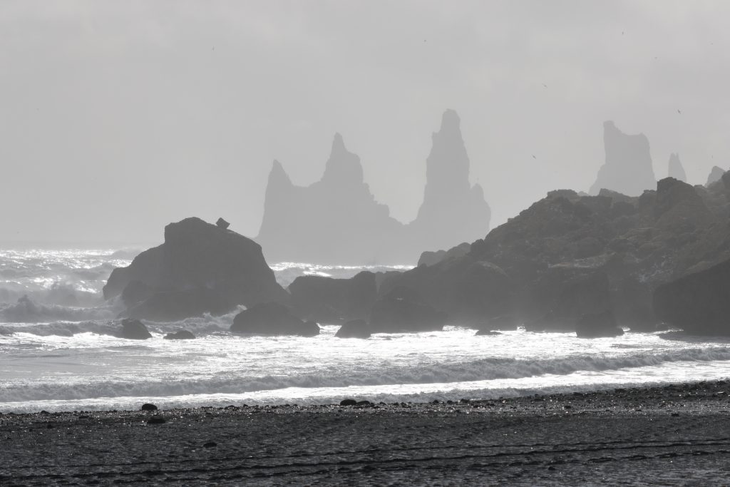 We had planned two days in the Vik-area. The next morning we were ready for Reynisfjara. This is the most dangerous beach in Iceland. Too many people go too close to the water. Usually there are warning signs all over the place but even if they are there people just ignore them. How stupid can you be? People have died there. There are the sneaker waves that are the dangerous ones. You don’t see them coming and I have seen lots if people run and get wet. Last winter has taken away a lot of sand and in January there was a earth slide that took away part of the rocks next to the caves. All over it is no longer possible to climb the basalt rocks or go into the caves. We were there earlier than a lot of other tourist and while we saw a few go down to the beach (they got wet!) but not a lot so for us photographers it was nice because we could take pics without people on them. And we had some really great light even though we were not there for sunrise. So we spent some time there. Btw. I read that two weeks ago at least one of the sneaker waves got into the parking lot… the beach is really changing.