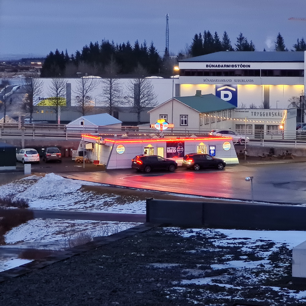 That day was my ‚free‘ day. 😉 I had planned to explore Selfoss a bit (not that there is much to explore…) but unfortunately the streets were full of ice so it was difficult to walk around. I was very careful and went down to the river with my tripod. In between I had to search shelter from the rain under the bridge. In the afternoon I had a beautiful rainbow over the river. In the evening I saw that illuminated drive-in restaurant and I remembered that I had seen customers already at 11 in the morning. So I was curious and googled it. Seems to be a very good restaurant with a phantastic reputation. Guess I need to check it out in the future. 😉 It was a quiet day for me and I rested.