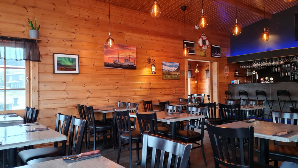 The next morning we continued our trip east. We had planned to go farther up than we both had been, stay two nights and then turn around and go back towards Reykjavik. The weather forecast was not very good though. It was supposed to be very windy on day 8 and day 9 the forecast said lots of snow. So while driving we discussed if we should really go all the way or not. The tentative plan B was to stay in Höfn instead. When it is too windy to drive we could at least go to a supermarket or a restaurant. When we arrived in Höfn we stopped at Kaffi Hornid at the entrance of town where my friend had said she had eaten the best fish and chips. They were just opening for the day and we had the fish and chips. It was actually good. When paying we talked to the owner and asked about the weather. She said that she had to go the Keflavik airport the next day but she was leaving in the night to not get into the storm. That confirmed our decision to go with plan B. We had not booked the new hotel but drove over and told them that we didn’t have bookings but wanted to stay for 2 nights. That was a good idea because we got a better price than on booking.com or their website (including breakfast).