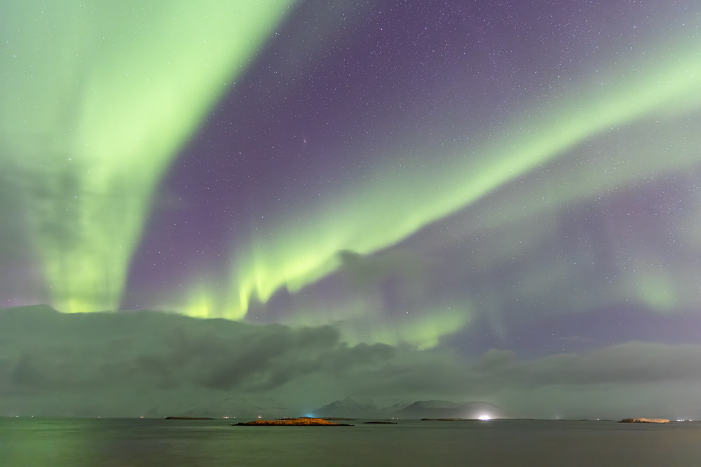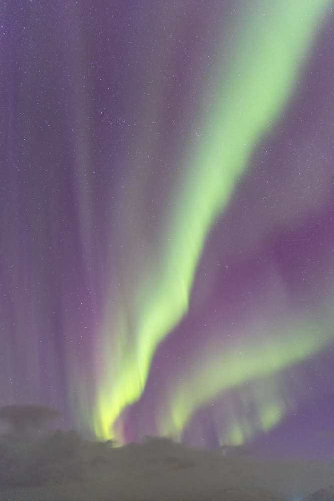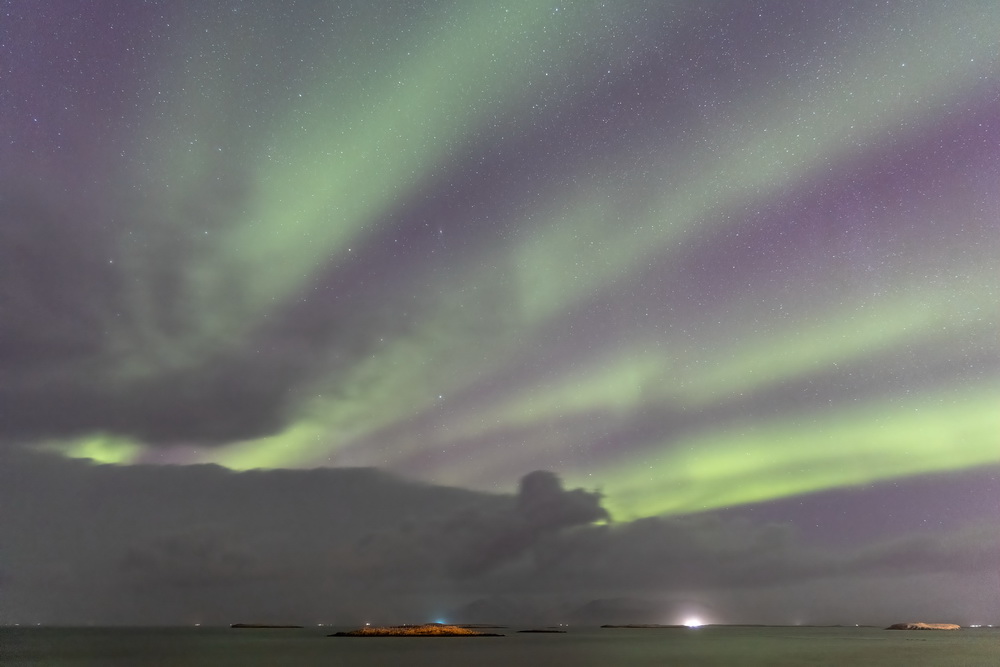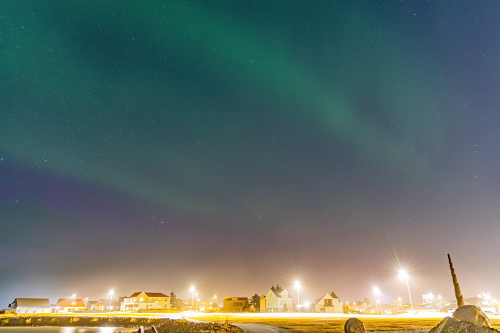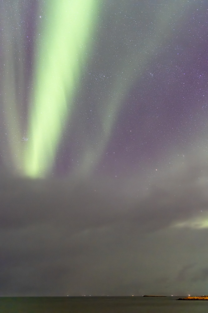The next day we didn’t have any plans. It was very windy so I stayed mostly at the hotel. There were some nice buildings close by so I went for walk to take some pics but walking back to the hotel against the wind was a bit hard. 😉 My friend had done some scouting for a northern light location and in hindsight I have to say that she had a very good judgement. We went to the supermarket in the afternoon and back to our Kaffi Hornid for an early dinner. When it got dark we got out and the lady was already dancing. Unfortunately I had forgotten my Ibuprofen at the hotel because I had a headache. For a while I was okay though and it was so beautiful to see the northern lights dancing again. But then clouds came in and activity was mostly over the city. Which means – too much light to take nice pics. So I went back to the hotel and to sleep but there was more northern lights in that night… 🙂